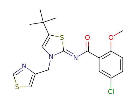 - Synonyms:N-[(2Z)-5-tert-butyl-3-(1,3-thiazol-4-ylmethyl)-1,3-thiazol-2(3H)-ylidene]-5-chloro-2-methoxybenzamide