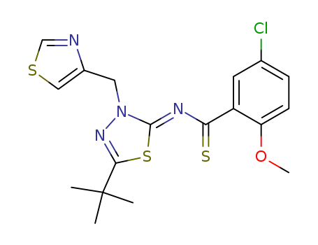 - Synonyms:N-[(2Z)-5-tert-butyl-3-(1,3-thiazol-4-ylmethyl)-1,3,4-thiadiazol-2(3H)-ylidene]-5-chloro-2-methoxybenzenecarbothioamide