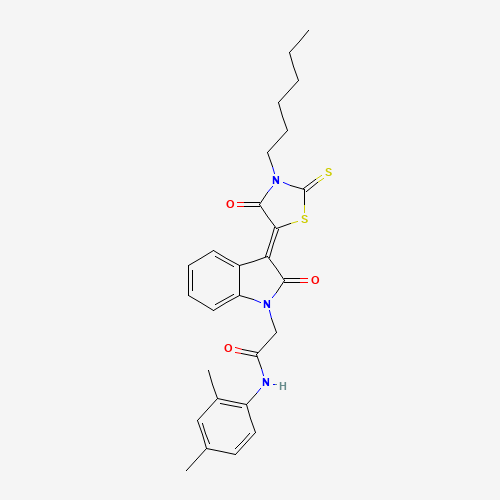 - Name: N-(2,4-dimethylphenyl)-2-[(3Z)-3-(3-hexyl-4-oxo-2-thioxo-1,3-thiazolidin-5-ylidene)-2-oxo-2,3-dihydro-1H-indol-1-yl]acetamide