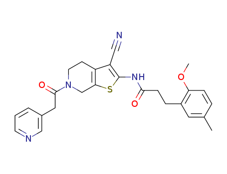 - Name: N-[3-Cyano-6-(2-pyridin-3-yl-ethanoyl)-4,5,6,7-tetrahydro-thieno[2,3-c]pyridin-2-yl]-3-(2-methoxy-5-methyl-phenyl)-propionamide