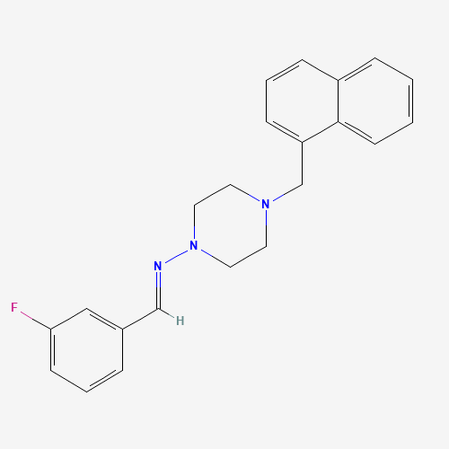 - Synonyms:STL335859;AKOS022131844;303102-33-2;BIM-0007446.P001;N-(3-Fluorobenzylidene)-4-(naphthalen-1-ylmethyl)piperazin-1-amine;N-[(E)-(3-fluorophenyl)methylidene]-4-(1-naphthylmethyl)-1-piperazinamine;(E)-1-(3-fluorophenyl)-N-{4-[(naphthalen-1-yl)methyl]piperazin-1-yl}methanimine;N-[(E)-(3-fluorophenyl)methylidene]-4-(naphthalen-1-ylmethyl)piperazin-1-amine