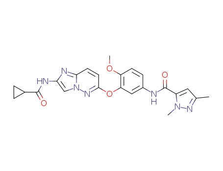 - Synonyms:N-[3-({2-[(cyclopropylcarbonyl)amino]imidazo[1,2-b]pyridazin-6-yl}oxy)-4-methoxyphenyl]-1,3-dimethyl-1H-pyrazole-5-carboxamide