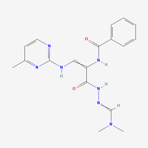 - Name: N-[3-[2-(dimethylaminomethylidene)hydrazinyl]-1-[(4-methylpyrimidin-2-yl)amino]-3-oxoprop-1-en-2-yl]benzamide
