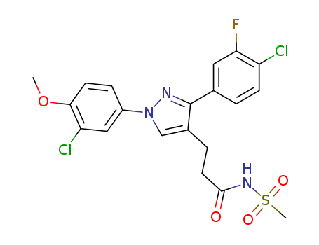 - Synonyms:N-{3-[3-(4-chloro-3-fluoro-phenyl)-1-(3-chloro-4-methoxy-phenyl)-1H-pyrazol-4-yl]-propionyl}-methanesulfonamide