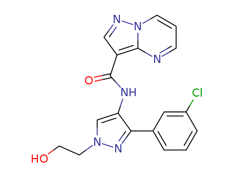- Synonyms:N-[3-(3-chlorophenyl)-1-(2-hydroxyethyl)-1H-pyrazol-4-yl]pyrazolo[1,5-a]pyrimidine-3-carboxamide