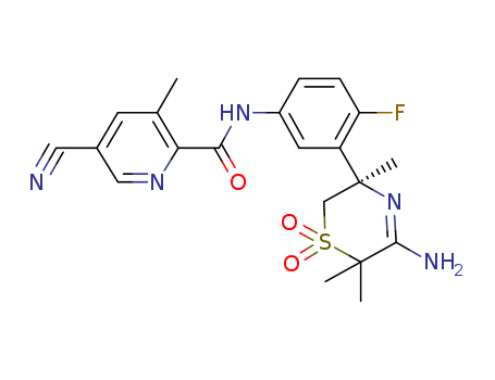 N-(3-((3R)-5-amino-3,6,6-trimethyl-1,1-dioxido-3,6-dihydro-2H-1,4-thiazin-3-yl)-4-fluorophenyl)-5-cyano-3-methyl-2-pyridinecarboxamide(1600510-20-0)