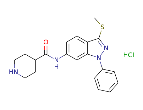- Synonyms:N-(3-(methylthio)-1-phenyl-1H-indazol-6-yl)piperidine-4-carboxamide hydrochloride