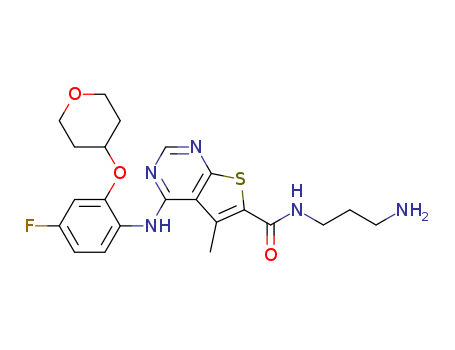 - Synonyms:N-(3-aminopropyl)-4-(4-fluoro-2-(tetrahydro-2H-pyran-4-yloxy)phenylamino)-5-methylthieno[2,3-d]pyrimidine-6-carboxamide