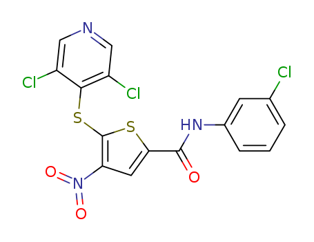 - Synonyms:N-(3-chlorophenyl)-5-[(3,5-dichloropyridin-4-yl)thio]-4-nitrothiophene-2-carboxamide