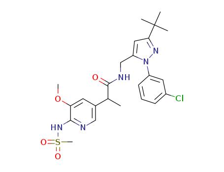 - Synonyms:N-((3-tert-butyl-1-(3-chlorophenyl)-1H-pyrazol-5-yl)methyl)-2-(5-methoxy-6-(methylsulfonamido)pyridin-3-yl)propanamide