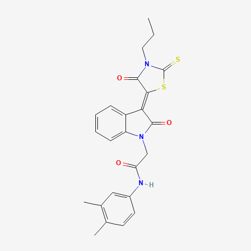 - Name: N-(3,4-dimethylphenyl)-2-[(3Z)-2-oxo-3-(4-oxo-3-propyl-2-thioxo-1,3-thiazolidin-5-ylidene)-2,3-dihydro-1H-indol-1-yl]acetamide
