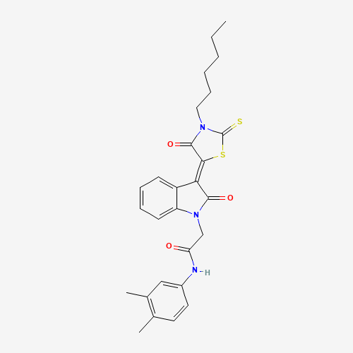 - Name: N-(3,4-dimethylphenyl)-2-[(3Z)-3-(3-hexyl-4-oxo-2-thioxo-1,3-thiazolidin-5-ylidene)-2-oxo-2,3-dihydro-1H-indol-1-yl]acetamide