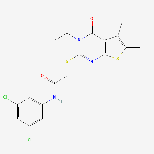 - Name: N-(3,5-Dichlorophenyl)-2-((3-ethyl-5,6-dimethyl-4-oxo-3,4-dihydrothieno[2,3-d]pyrimidin-2-yl)thio)acetamide