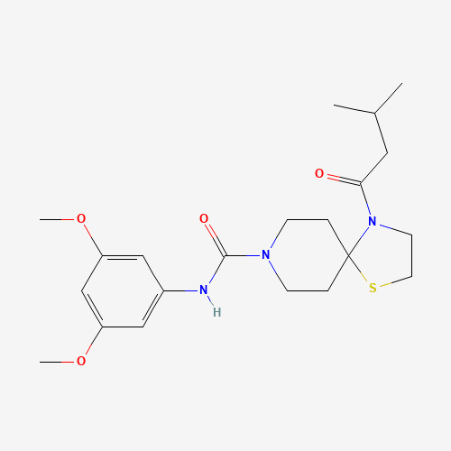 - Name: N-(3,5-dimethoxyphenyl)-4-(3-methylbutanoyl)-1-thia-4,8-diazaspiro[4.5]decane-8-carboxamide