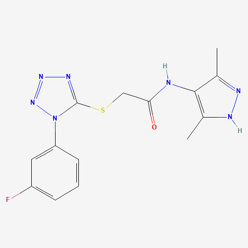 - Name: N-(3,5-dimethyl-1H-pyrazol-4-yl)-2-[1-(3-fluorophenyl)tetrazol-5-yl]sulfanylacetamide