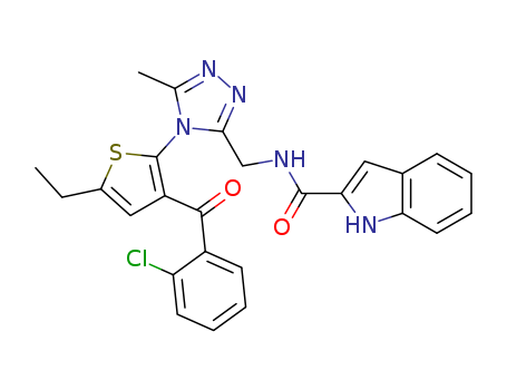 - Synonyms:N-(4-(3-(2-chlorobenzoyl)-5-ethylthiophen-2-yl)-5-methyl[1,2,4]triazol-3-ylmethyl)indole-2-carboxamide