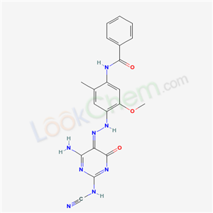 - Synonyms:Benzamide,N-(4-((6-amino-2-(cyanoamino)-1,4-dihydro-4-oxo-5-pyrimidinyl)azo)-5-methoxy-2-methylphenyl);Benzamide,N-(4-(2-(4-amino-2-(cyanoamino)-1,6-dihydro-6-oxo-5-pyrimidinyl)diazenyl)-5-methoxy-2-methylphenyl);