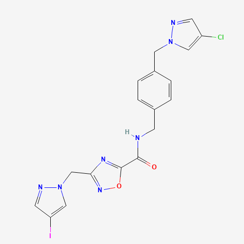 N-{4-[(4-chloro-1H-pyrazol-1-yl)methyl]benzyl}-3-[(4-iodo-1H-pyrazol-1-yl)methyl]-1,2,4-oxadiazole-5-carboxamide