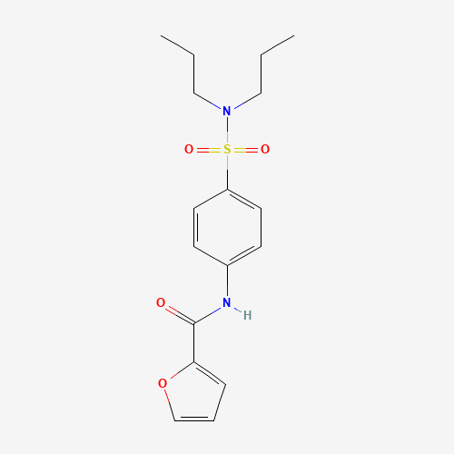- Synonyms:N-{4-[(dipropylamino)sulfonyl]phenyl}-2-furamide;N-[4-(dipropylsulfamoyl)phenyl]furan-2-carboxamide;DTXSID601192509;STK096350;AKOS003301482;2-Furancarboxamide, N-[4-[(dipropylamino)sulfonyl]phenyl]-;510740-72-4