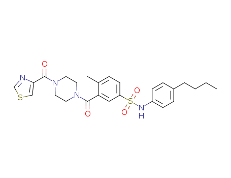 N-(4-butylphenyl)-4-methyl-3-(4-(thiazole-4-carbonyl)piperazine-1-carbonyl)benzenesulfonamide(1311383-27-3)
