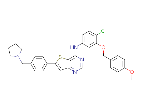 - Name: N-(4-chloro-3-(4-methoxybenzyloxy)phenyl)-6-(4-(pyrrolidin-1-ylmethyl)phenyl)thieno[3,2-d]pyrimidin-4-amine