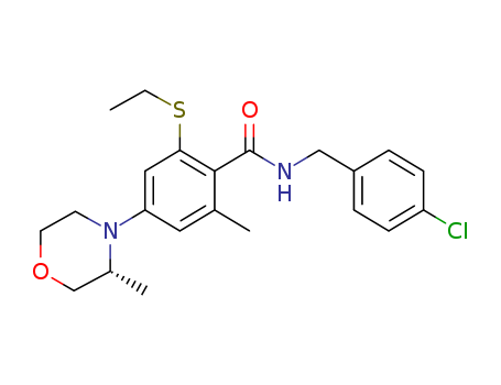 - Synonyms:N-[(4-chlorophenyl)-methyl]-2-ethylsulfanyl-6-methyl-4-[(3R)-3-methyl-morpholin-4-yl]-benzamide