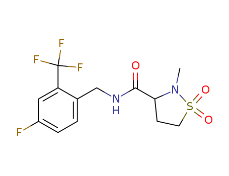 - Name: N-{[4-fluoro-2-(trifluoromethyl)phenyl]methyl}-2-methyl-3-isothiazolidinecarboxamide 1,1-dioxide