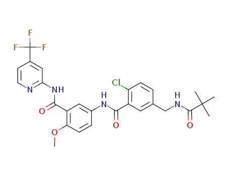 - Synonyms:N-[4-methoxy-3-(4-trifluoromethyl-pyridin-2-yl)aminocarbonyl-phenyl]-2-chloro-5-(tert-butylcarbonylamino)methyl-benzamide