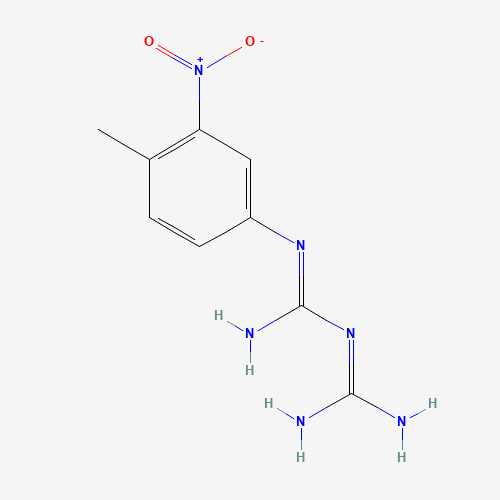 - Synonyms:N-(4-methyl-3-nitrophenyl)imidodicarbonimidic diamide;1379811-56-9;1-(diaminomethylidene)-2-(4-methyl-3-nitrophenyl)guanidine;1-CARBAMIMIDAMIDO-N-(4-METHYL-3-NITROPHENYL)METHANIMIDAMIDE;N-(4-Methyl-3-nitrophenyl)imidodicarbonimidicdiamide;DTXSID401183948;MFCD22374943;STL582112;AKOS015997406;LS-06772;A906078;Guanidine, N-(aminoiminomethyl)-N'-(4-methyl-3-nitrophenyl)-
