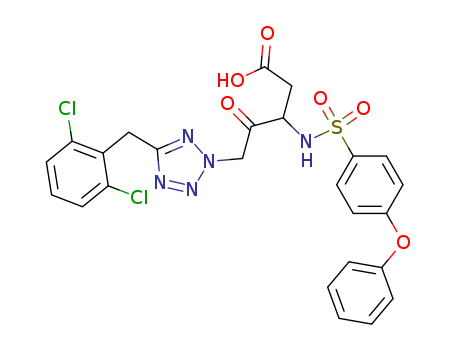- Name: N-(4-phenyloxyphenyl)sulfonyl-3-amino-4-oxo-5-(5-(2,6-dichlorophenylmethyl)tetrazol-2-yl)pentanoic acid