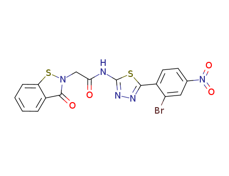 - Synonyms:N-(5-(2-bromo-4-nitrophenyl)-1,3,4-thiadiazol-2-yl)-2-(3-oxo-1,2-benzothiazol-2(3H)-yl)acetamide