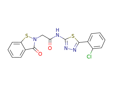 - Synonyms:N-(5-(2-chlorophenyl)-1,3,4-thiadiazol-2-yl)-2-(3-oxo-1,2-benzothiazol-2(3H)-yl)acetamide