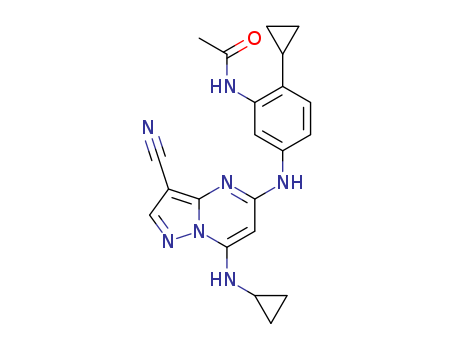 - Synonyms:N-[5-[[3-cyano-7-(cyclopropylamino)pyrazolo[1,5-a]pyrimidin-5-yl]amino]-2-cyclopropylphenyl]acetamide