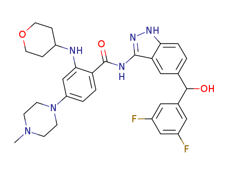 N-{5-[(3,5-difluoro-phenyl)-hydroxy-methyl]-1H-indazol-3-yl}-4-(4-methyl-piperazin-1-yl)-2-(tetrahydro-pyran-4-ylamino)-benzamide(1108743-58-3)