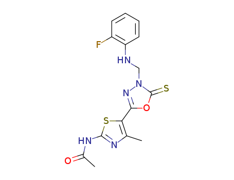 - Synonyms:N-(5-(4-(((2-fluorophenyl)amino)methyl)-5-thioxo-4,5-dihydro-1,3,4-oxadiazol-2-yl)-4-methylthiazol-2-yl)acetamide