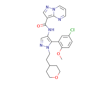 - 1260167-20-1/N-(5-(5-cbloro-2-methoxyphenyl)-1-(2-(tetrahyclro-2H-pyran-4-yl)ethyl)-1H-pyrazol-4-yl)pyrazolo[1,5-a]pyrimidine-3-carboxamide