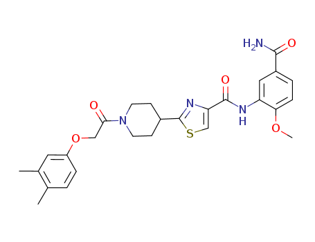 - Name: N-[5-(aminocarbonyl)-2-methoxyphenyl]-2-{1-[(3,4-dimethylphenoxy)acetyl]-4-piperidinyl}-1,3-thiazole-4-carboxamide
