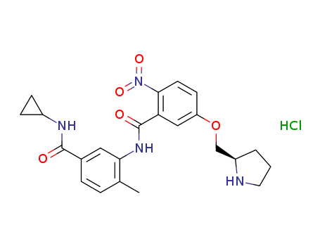 - Synonyms:N-{5-[(cyclopropylamino)carbonyl]-2-methylphenyl}-2-nitro-5-[(2R)-pyrrolidin-2 ylmethoxy]benzamide hydrochloride