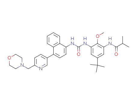 N-(5-tert-Butyl-2-methoxy-3-{3-[4-(6-morpholin-4-ylmethyl-pyridin-3-yl)-naphthalen-1-yl-]-ureido}-phenyl)-isobutyramide(294850-96-7)