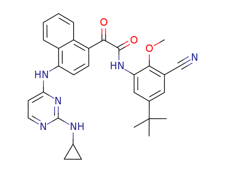 N-(5-tert-butyl-3-cyano-2-methoxyphenyl)-2-oxo-2-(4-(2-(cyclopropylamino)pyrimidin-4-ylamino)naphthalen-1-yl)acetamide(1041052-65-6)