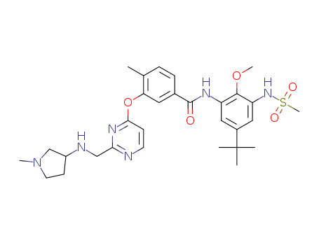 N-(5-tert-butyl-3-methanesulphonylamino-2-methoxy-phenyl)-4-methyl-3-{2-[(1-methyl-pyrrolidin-3-ylamino)-methyl]-pyrimidin-4-yloxy}-benzamide(1215029-30-3)