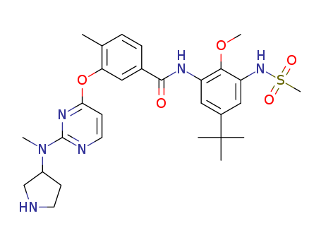 N-(5-tert-butyl-3-methanesulphonylamino-2-methoxy-phenyl)-4-methyl-3-[2-(methyl-pyrrolidin-3-yl-amino)-pyrimidin-4-yloxy]-benzamide(1215032-06-6)