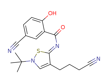 N-[(5Z)-2-tert-butyl-4-(3-cyanopropyl)isothiazol-5(2H)-ylidene]-5-cyano-2-hydroxybenzamide(1075243-50-3)
