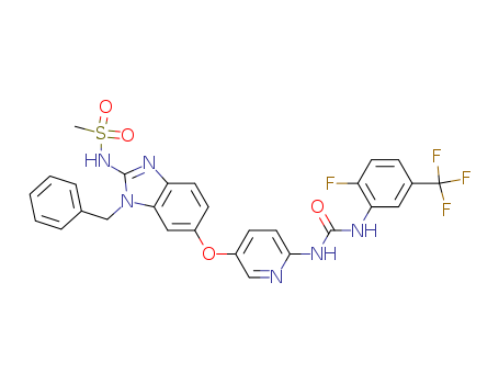 N-(6-(6-((2-fluoro-5-(trifluoromethyl)phenyl)aminocarbonylamino)-3-pyridyloxy)-1benzyl-1H-benzimidazol-2-yl)methanesulfonamide(433225-17-3)