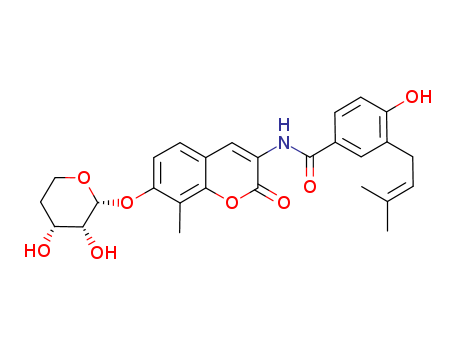 N-(7-((2R,3R,4R)-3,4-dihydroxytetrahydro-2H-pyran-2-yloxy)-8-methyl-2-oxo-2H-chromen-3-yl)-4-hydroxy-3-(3-methylbut-2-enyl)benzamide(1239437-84-3)