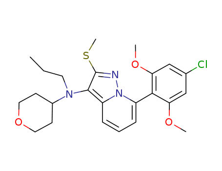 - Name: N-[7-(4-chloro-2,6-dimethoxyphenyl)-2-(methylsulfanyl)pyrazolo[1,5-a]pyridin-3-yl]-N-propyl-N-tetrahydro-2H-4-pyranylamine
