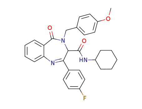 - Synonyms:N-cyclohexyl-2-(4-fluorophenyl)-4-(4-methoxybenzyl)-5-oxo-3,4-dihydrobenzo[e][1,4]diazepine-3-carboxamide