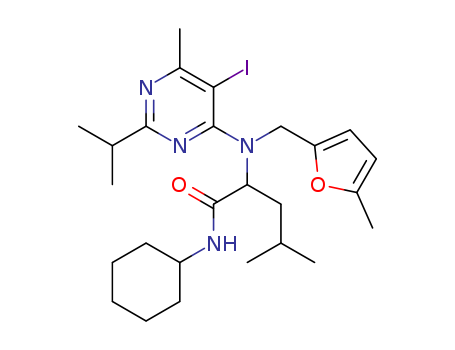 - Synonyms:N-cyclohexyl-2-((5-iodo-2-isopropyl-6-methylpyrimidin-4-yl)((5-methylfuran-2-yl)methyl)amino)-4-methylpentanamide