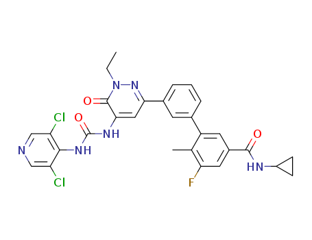 N-cyclopropyl-3'-[5-({[(3,5-dichloropyridin-4-yl)amino]carbonyl}amino)-1-ethyl-6-oxo-1,6-dihydropyridazin-3-yl]-5-fluoro-6-methylbiphenyl-3-carboxamide(1229440-37-2)