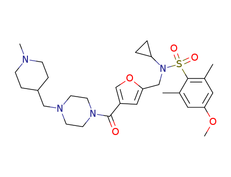 - Name: N-cyclopropyl-4-methoxy-2,6-dimethyl-N-{[4-({4-[(1-methylpiperidin-4-yl)methyl]piperazin-1-yl}carbonyl)furan-2-yl]methyl}benzenesulfonamide